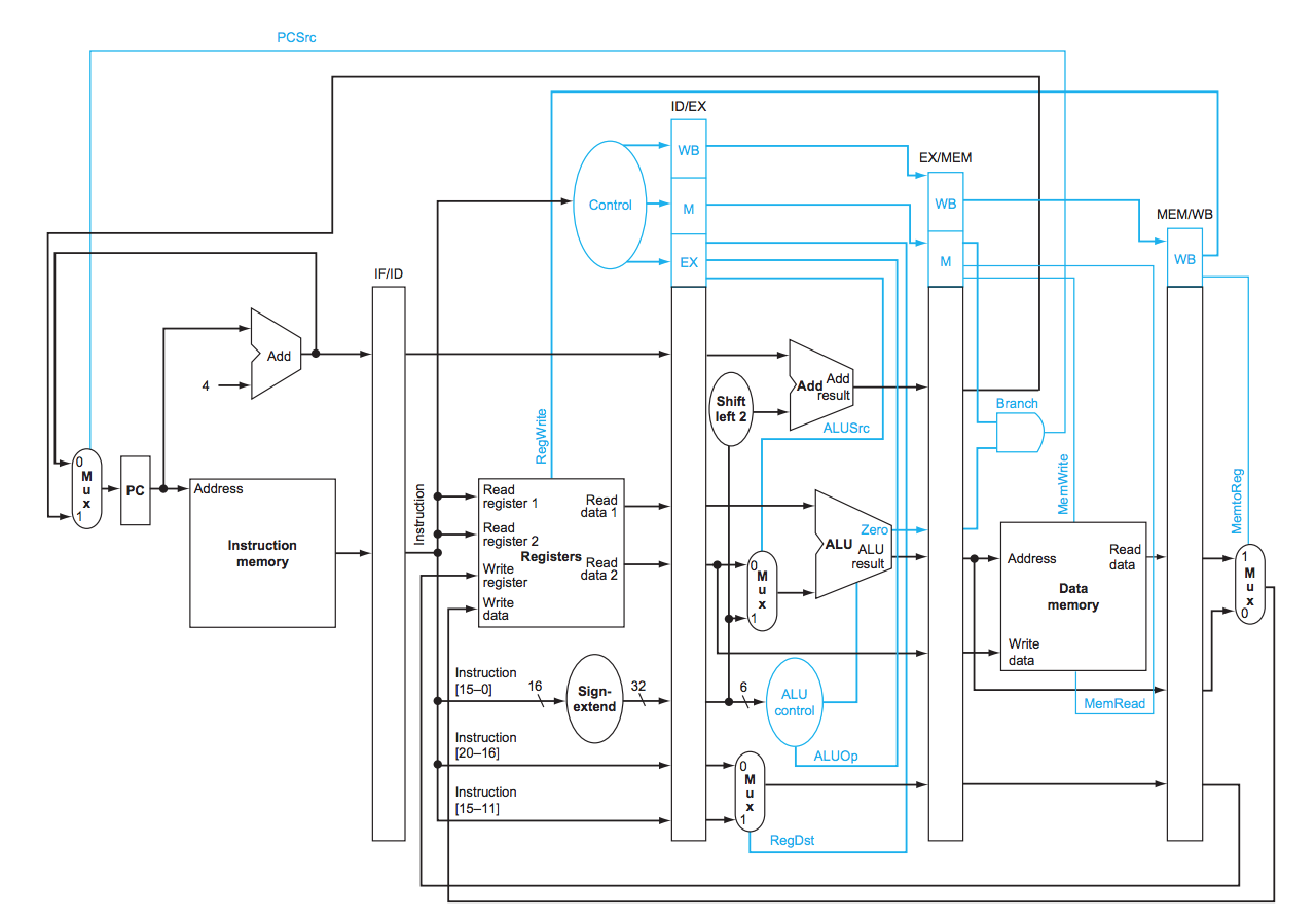图4:控制冒险通路示意图(没有额外标记ALUsrc等信息)